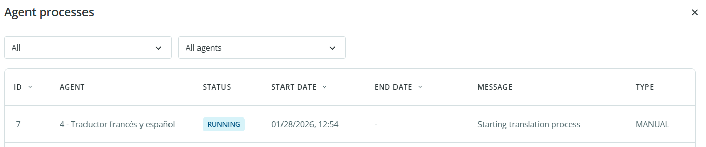 Once approved, if you return to the Agent processes section, you will see that the status has changed to Completed.