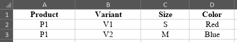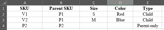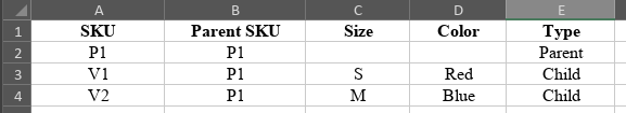 - Parent rows (when “Add parents to variants” is enabled) always use only product-level values.