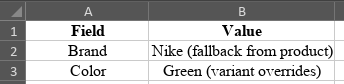 - Empty strings (“”) in the Variant tab count as intentional empties, meaning they override product values.
