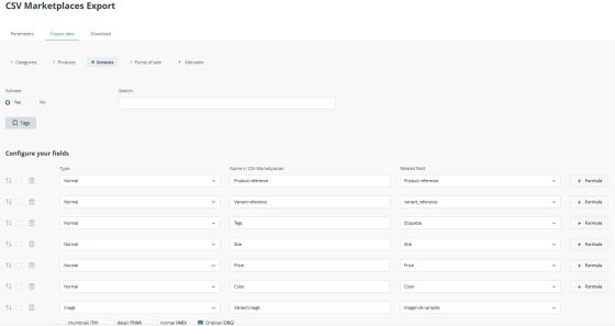 Variant fields depend on the PIM: