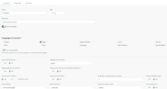 - Each language will generate its own set of columns in the CSV (e.g., Name_en, Name_es, Description_fr, etc.)