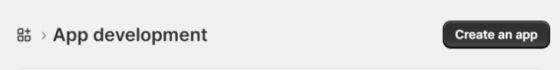 After assigning a name to the app, it will appear under App development. Open the created app and go to the Configuration > Admin API Integration tab to select the necessary permissions so the connector can sync with the Shopify store.