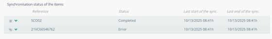 Once the Activity Register shows that a synchronization has started or finished, you will be able to access the Item Synchronization Status tab. This allows you to view more details about the latest synchronization of each item.