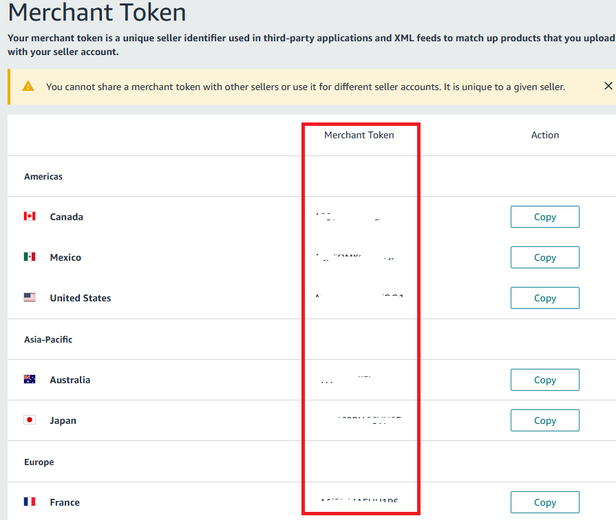 - Seleccionar el token correspondiente al país de venta.