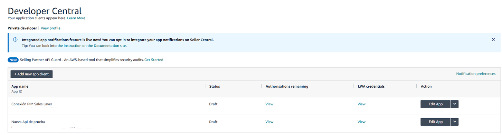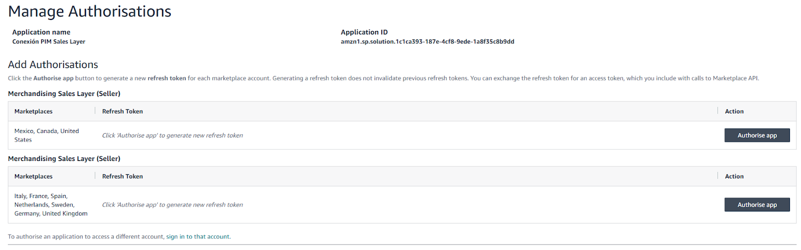 El primer paso para automatizar la sincronización de productos entre Sales Layer y Amazon es registrar y crear una aplicación dentro del portal de Amazon del país correspondiente.