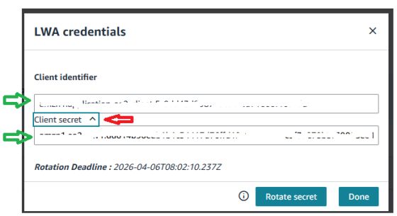 Amazon generará el Refresh Token para esa región. Guardar este valor.