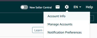 - En la pantalla principal de Seller/Vendor Central, pulsar el icono de configuración (⚙️) arriba a la derecha.