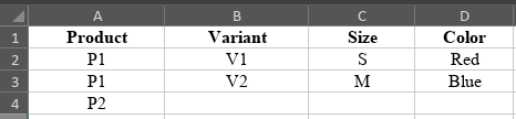 - Cada variante sigue generando su fila combinada con datos del producto y la variante
