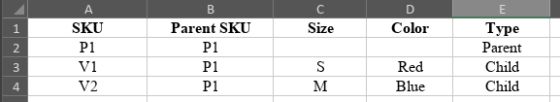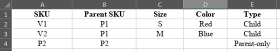 - Las filas Padre solo usan datos del producto (Cuando “Añadir padres de variantes fusionadas” está activado)