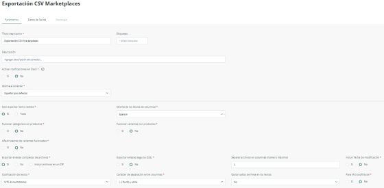 La pestaña Parámetros define cómo se generará el archivo CSV.