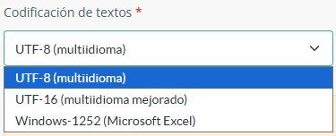 Selecciona la codificación requerida por el sistema objetivo de los datos.