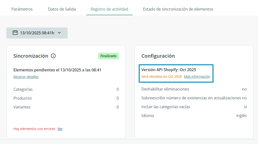 La nueva versión del conector de Shopify, v1.11, implementa varias mejoras de interfaz y funcionamiento: