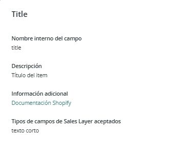 - Los campos tienen nombres descriptivos para facilitar el mapeo. No es necesario conocer el nombre interno/aceptado por Shopify. En el caso de que migre un conector con una configuración determinada, no es necesario realizar ningún cambio en el mapeo, ya que el conector ajustará los nombres automáticamente.