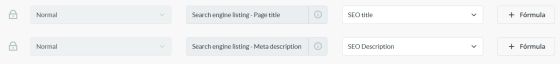 A partir de esta versión, los campos para el envío de título y descripción SEO son Search engine listing - Page title y Search engine listing - Meta description, creados por defecto en la tabla de Categorías y Productos en el conector.