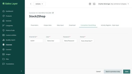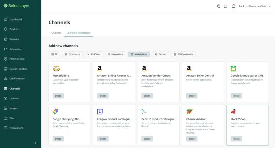 Ve a la sección Canales en Sales Layer y crea un nuevo conector Stock2Shop.