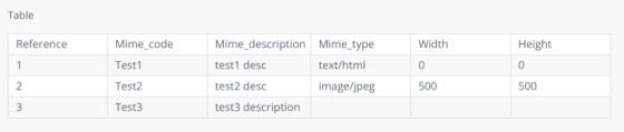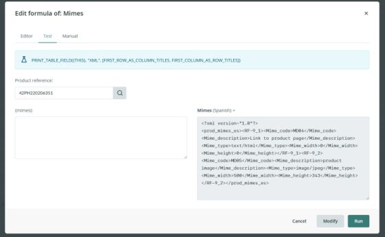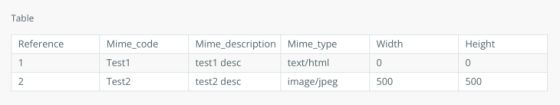 - format: Formato con el que se exportarán los datos del campo de tipo tabla. Podrá ser JSON, XML o HTML.
