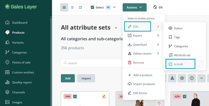 Prompt: “Prepare an .xly file to be imported as attribute sets in Sales Layer based on my product structure”. (include your product data in the prompt)