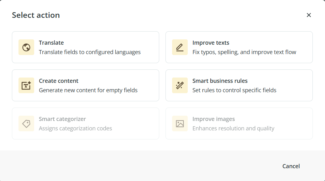 In the initial phase of release, the feature is available only for Products. Support for more operations and additional tables such as Variants, Categories, and others is planned for future updates.
