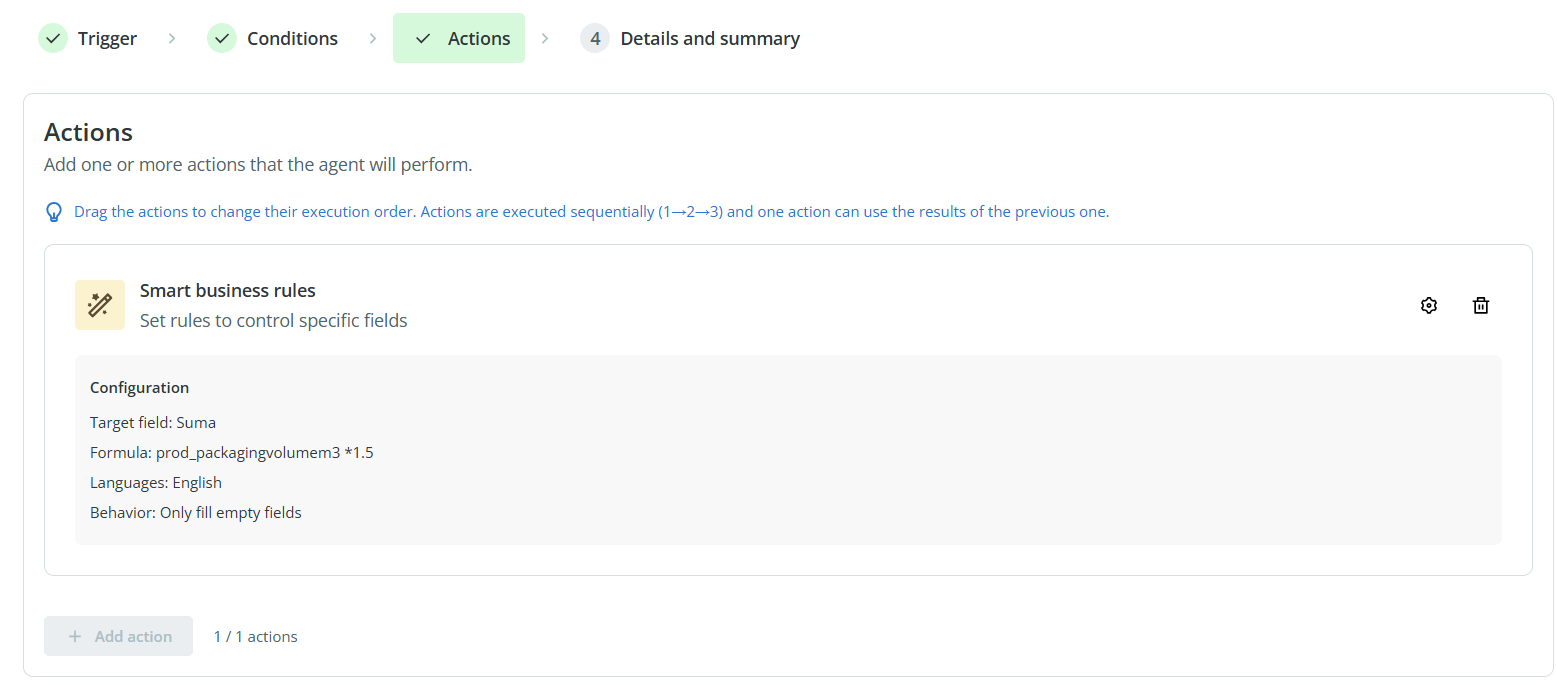Your Smart Business Rules action will then be included as part of the agent workflow.